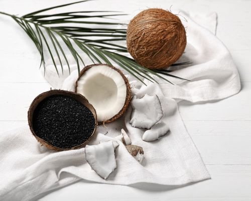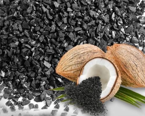 Activated charcoal is used in water filters, medicines that selectively remove toxins, and chemical purification processes. In the production of steam-activated charcoal, first the coconut shell or coal is heated to create a char. This char is then “activated” in a furnace at high temperatures of 1,700° to 1,800°F with steam in the absence of oxygen. In the steam-activation process, all volatile compounds are removed, and at the same time layer after layer of carbon atoms are peeled off, enlarging the existing internal pores, and leaving behind a carbon skeleton. The carbon + steam reaction results in producing hydrogen gas and carbon monoxide (C+H2O=H2 +CO). As the carbon monoxide gases off it takes carbon atoms with it. Typically, 3 pounds of raw charcoal will produce 1 pound of activated charcoal.